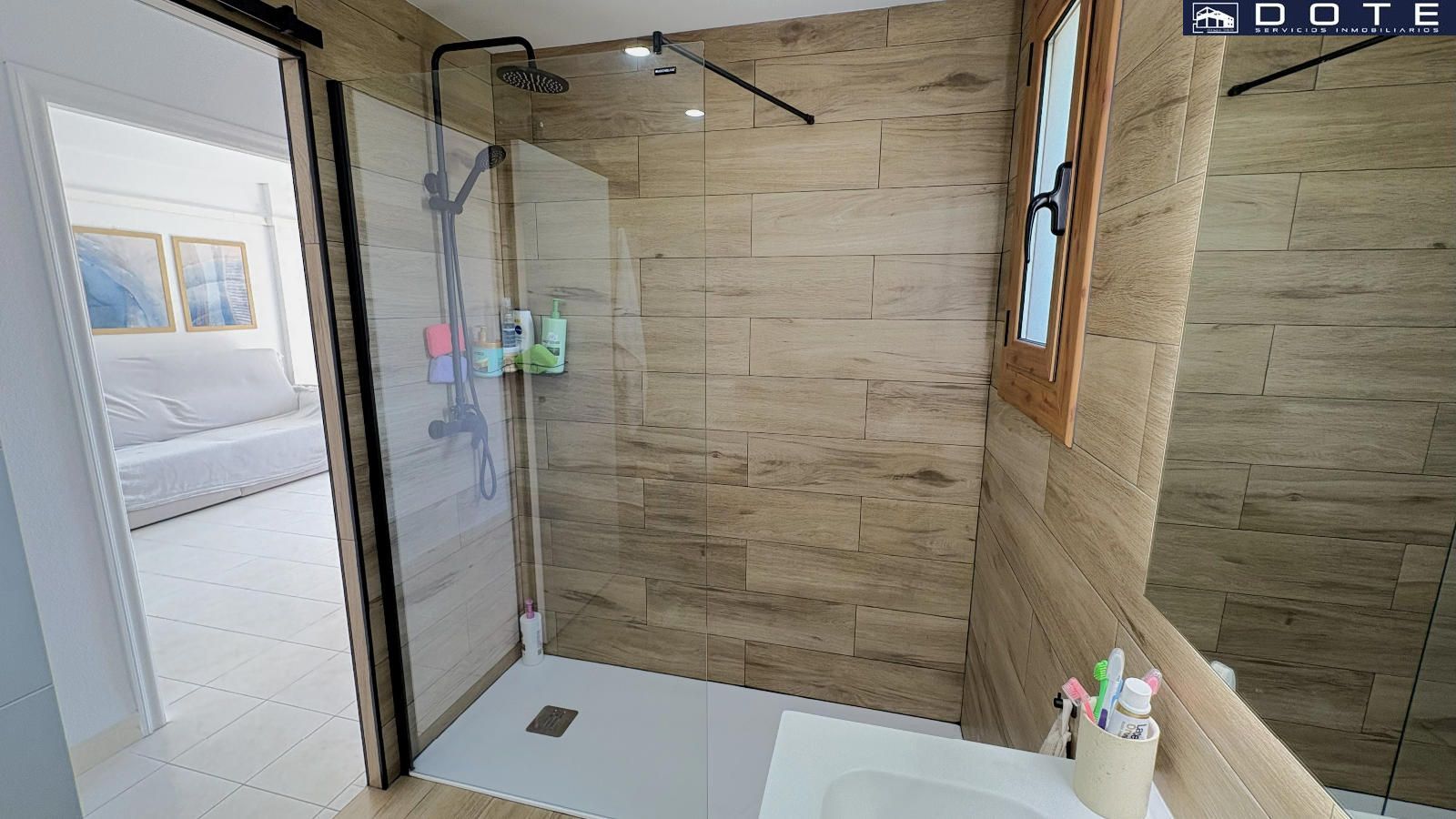 nada más entrar, vemos como este apartamento combina funcionalidad y estética contemporánea, accediendo desde el recibidor que nos da paso al salón-comedor, con mucha amplitud, luz natural y salida a la terraza, ideal para hacer vida fuera. A continuación, damos con la cocina, independiente, completamente equipada y con lavadero/despensa. La zona de noche, cuenta con dos amplias habitaciones, todas exteriores, la principal con armario empotrado y un baño de diseño muy elegante, con acabados de madera y plato de ducha.